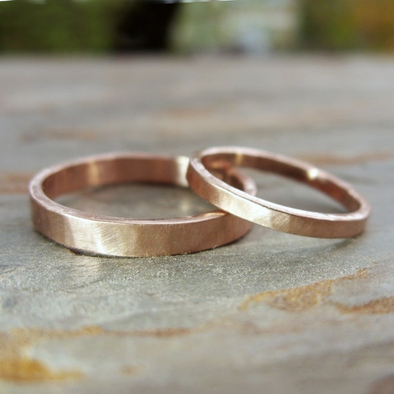 Hammered Rose Gold Wedding Band Set Torchfire Studio